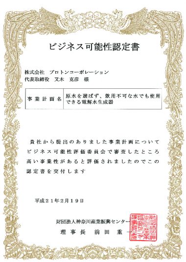 神奈川産業振興中商務可能性認証書